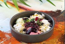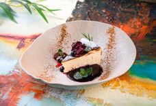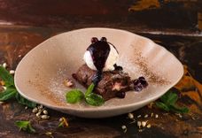 Брауни с крем-чиз, лесными ягодами и шариком мороженого
