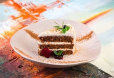 125 г • Тонкие ломтики говяжьей вырезки, рукола, томаты черри, пармезан, каперсы, лимон и соус пиросмани.