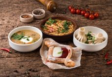 700 г • Рассольник со сметаной, Мадам Бовари с курицей, Хинкали классические, Десерт по-аджарски
