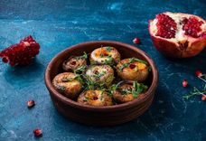 170 г • Шампиньоны, запечённые с фермерским имеретинским сыром, грузинскими специями и зеленью.