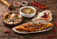 300/125 г • Наваристый суп с говядиной, рисом и томатами. С душистым букетом грузинских специй, пикантной остротой перца чили, чесноком и свежей зеленью. Подается с традиционным хлебом шоти.